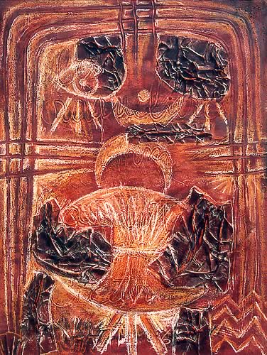 craquelures comme autant de cicatrices huile terre et collage sur toile |